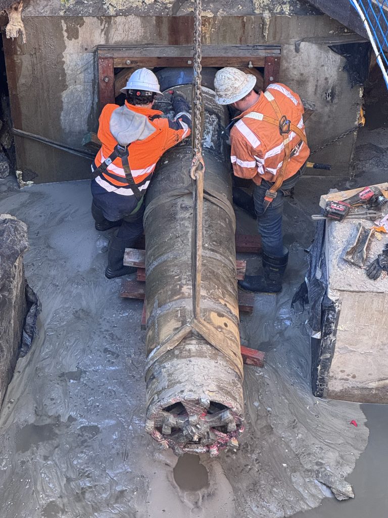 The custom-cut Natural 60 HG rubber seal performed effectively during the MTBM retrieval. It successfully prevented earth and slurry from entering the tunnel, ensuring that the shaft remained stable and safe for workers while the machine was withdrawn.