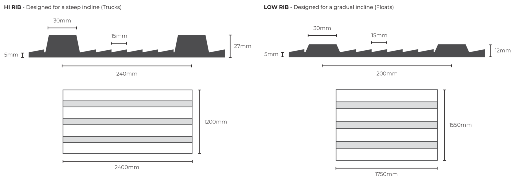 They are typically used to create an anti-slip surface for animals on ramps of transport vehicles but can also be used on any area which has a steep incline or decline.